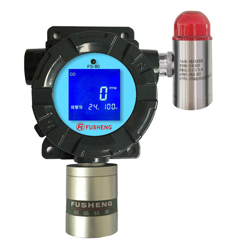 FS-80-CO固定式一氧化碳報警儀用于監測危險場所內存在的有毒氣體, 并將檢測到的氣體濃度在檢測儀上顯示出來,同時輸出4-20mA電流信號,與控制器或DCS、PLC連接,實現遠程監控,報警儀同時具有2組繼電器輸出,可用來直接驅動風機等相關聯動設備。產品采用進口傳感器,具有信號穩定,反應快等優點。產品廣泛用于石油、化工、鋼鐵、環保、制藥、市政等行業。