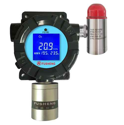FS-80-O2固定式氣體報警儀用于監測危險場所內存在的氧氣, 并將檢測到的氣體濃度在檢測儀上顯示出來,同時輸出4-20mA電流信號,與控制器或DCS、PLC連接,實現遠程監控,報警儀同時具有2組繼電器輸出,可用來直接驅動風機等相關聯動設備。產品采用進口傳感器,具有信號穩定,反應快等優點。產品廣泛用于石油、化工、鋼鐵、環保、制藥、市政等行業。
